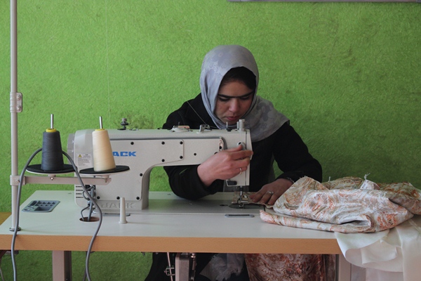 در این کارگاه 15 خانم در بخشهای مختلف مصروف کار اند و هر کدام در کنار تولید لباس، برای زنان دیگر حرفهای مورد نظر را آموزش میدهند.