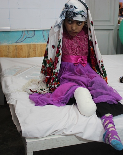 در این میان آمنه دختر 12 سالهیست که بر اثر مرض شکر یک پای وچشماش را از دست داده است، او میگوید: «هفت سال است که به این مرض مبتلا شدم، اول پنجهها و بعدا پایم را از دست دادم ».