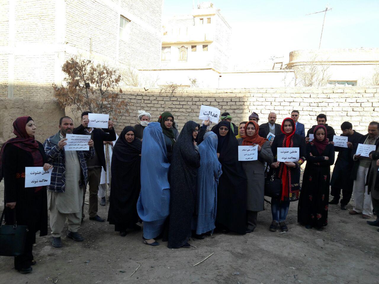 شماری از اعضای نهادهای جامعه مدنی و فعالان حقوق زن در هرات با همکاری اعضای تئاتر هرات این بار در اقدامی متفاوتتر در برابر خشونتهای اخیر در برابر زنان دادخواهی نمودند، در این دادخواهی فعالان مدنی و حقوق زن، خشونتهای اخیر در برابر زنان را محکوم کردند.