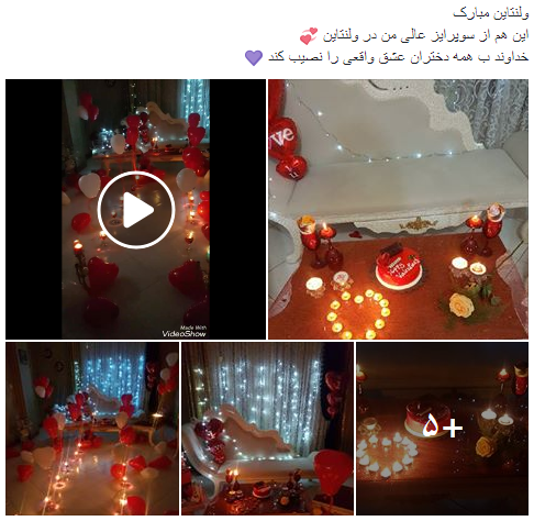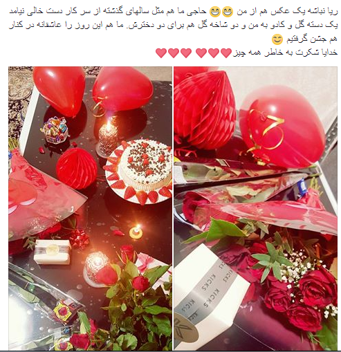 وی میگوید: “خانم من وقتی عکس کادوی را در فیسبوک میبیند آن را برایم نشان میدهد و میگوید کمی از شوهران این خانمها یاد بگیر ببین به خانمهای خود چقدر ارزش میدهند “.