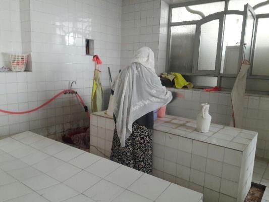 نفسگل زنی 60 ساله است، نفس نفس زنان رو به غسلخانه میرود، برای این که کودکی 8 ساله را بشوید، خودم را معرفی میکنم و برای صحبت با او وقت میگیرم با چهرهی خندان، اما با تردید جواب میدهد که در غسالخانه منتظر باشم و او پس از شستن کودک میآید.