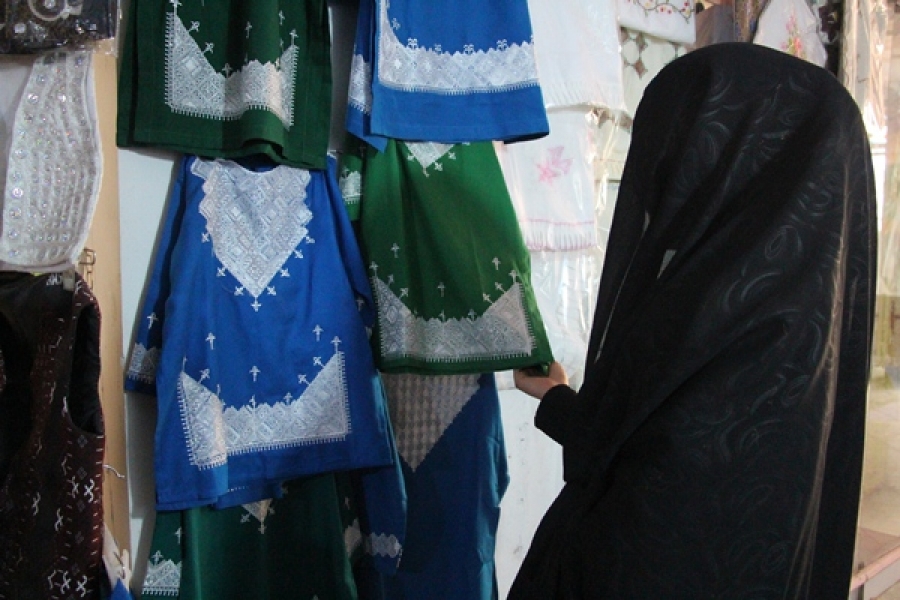 خدیجه که خریدار یخنهای خامک دوزی است میگوید همیشه یخن خریداری میکند چون پسرش دوست دارد لباس افغانی با یخن خامک دوزی بپوشد.