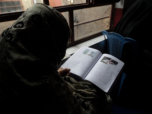 کنار حنیفه زن دیگری نشسته است که حدود 40 سال سن دارد. نامش فاطمه است از این که بعداز هشتماه میتواند به خوبی بخواند و بنویسید ابراز خرسندی میکند.