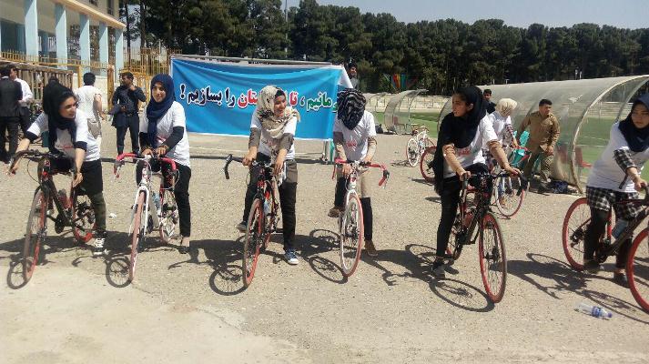 مسابقه بایسکلرانی میان دو تیم از دختران بایسکل ران با شعار «میمانیم، تا افغانستان را بسازیم» امروز از سوی آمریت امور جوانان ولایت هرات برگزار شد.