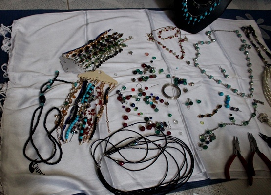 سنگهای قیمتی، مروارید، سیم، انواع زنجیرهای گرانبها و معمولی و چندین نوع انبور، وسایل کار کریمه حسینی را تشکیل میدهد. او بیش از هفت سال است که مصروف ساخت جواهرات است و از این طریق چرخ زندگی را میچرخاند.