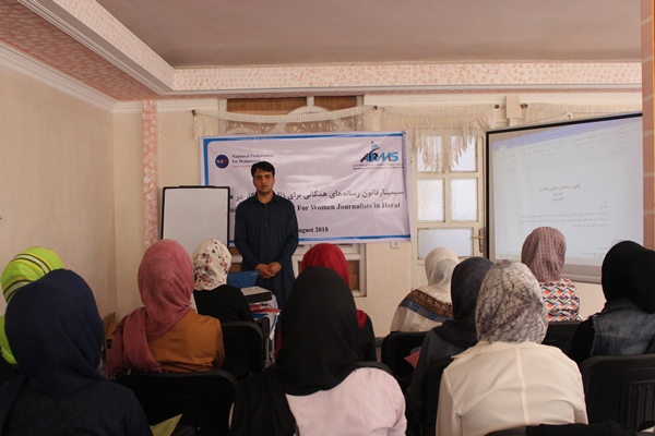 کارگاه آموزشی “قانون رسانههای همگانی” امروز (دوشنبه) برای 20 تن از خبرنگاران زن و دانشجویان رشتهی روزنامهنگاری از سوی انستیتوت تحقیقات و مطالعات رسانهای افغانستان برگزار شد.