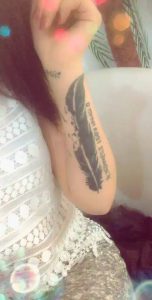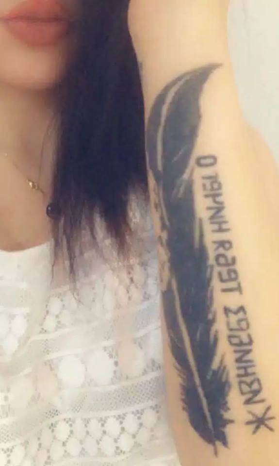 او میگوید:«روی دستم طرح یک کبوتر را خالکوبی کردم چون نمادی از صلح و آزادی است، من عاشق آزادی هستم و میخواهم همیشه نمادی از آن را با خود داشته باشم ».