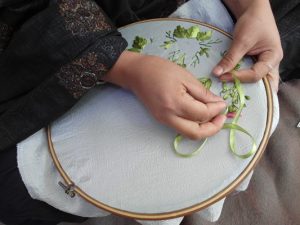پاسخ: رباندوزی، گلشن دوزی، خامک دوزی، بافندگی، حوله بافی و دیگر صنایع دستی را زنان با گرفتن مواد خام آن را آماده میکنند و ما آن را به فروش میرسانیم.