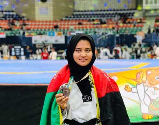 زهرا میرزایی، عضو تیم ملی تکواندوی افغانستان میگوید: «برای اولین بار توانستم در مسابقات “جی ون” هندوستان، مدال برنز را از آن خود کنم و احساس خوبی دارم.»