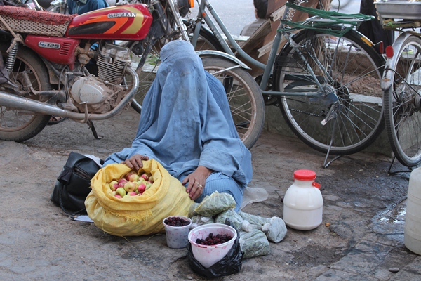 بصیره (نام مستعار) از یک سال به این سو در موقعیت بین درب خوش و قوماندانی امنیه، دستفروشی میکند.