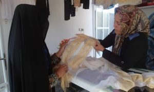حلیمه بهادری، یازده سال به این طرف به تولید و فروش روبان، گلشن، خامک، و دیگر صنایع دستی میپردازد و توانسته از این راه کسب درامد کند.