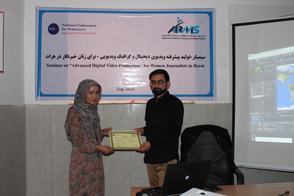 “تولید پیشرفتهی ویدیوی دیجیتال و گرافیک ویدیویی” عنوان کارگاه آموزشی دهروزهیی است که از سوی انستیتوت تحقیقات و مطالعات رسانهای افغانستان برای زنان خبرنگار در هرات برگزار شد.