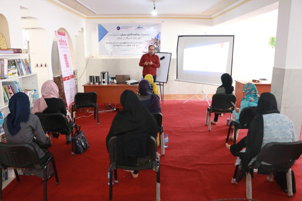 کارگاه آموزشی روزنامهنگاری بحران با تمرکز پوشش های گزارشکرونا، برای خبرنگاران و دانشجویان زن رشتهی روزنامهنگاری در هرات از سوی انستیتوت تحقیقات و مطالعات رسانهای افغانستان برگزار شد.