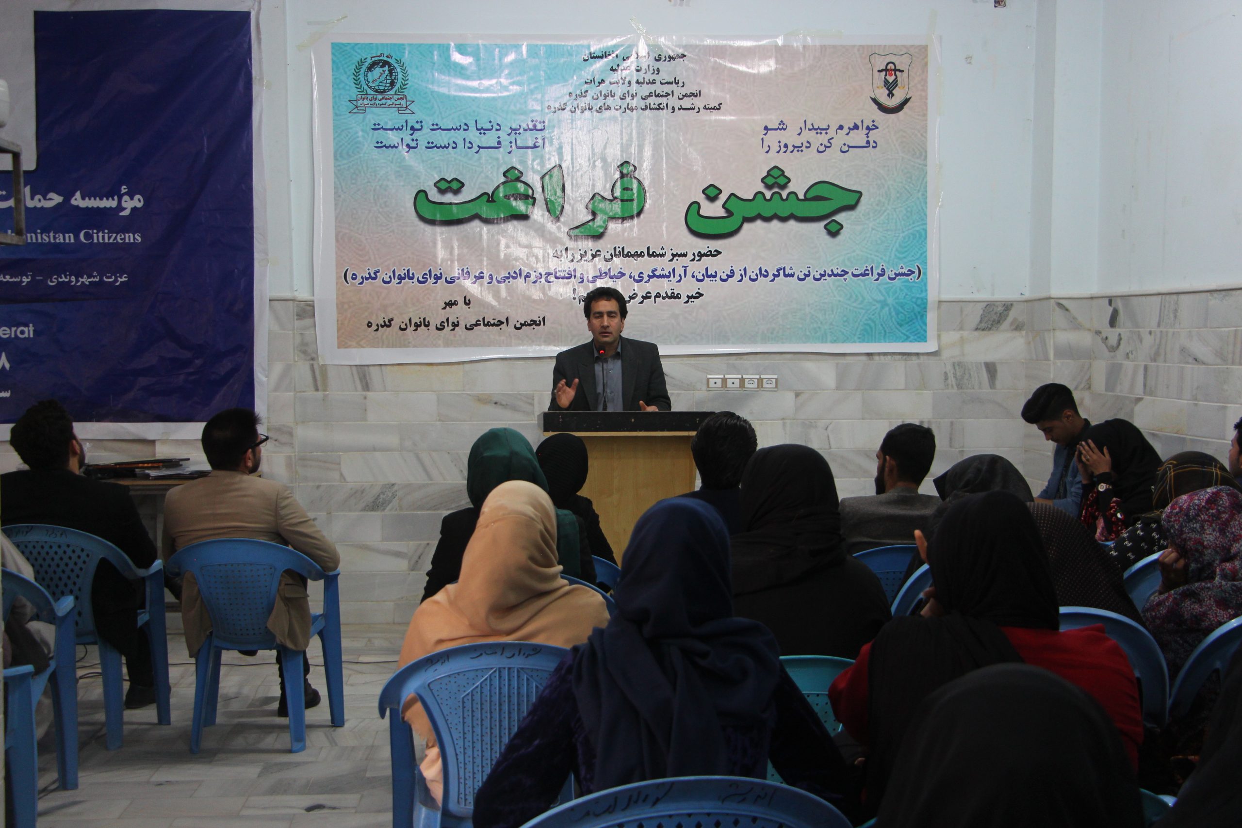 وی میگوید، این ششمین دور جشن فراغت زنان شهرستان گذره است و آنان تلاش میکنند برنامههای آموزشیشان را در بخشهای مختلف توسعه دهند و کارگاههای تولیدی برای زنان ایجاد کنند.