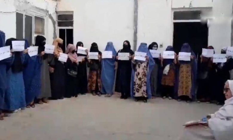 این درحالیست که پس از وضع ممنوعیتها در برابر زنان، شماری زیادی از آنان در جادهها دست به اعتراض زده اما در پی دستگیری شماری از معترضین توسط طالبان، این زنان اکنون در فضای سر بسته اعتراض میکنند.