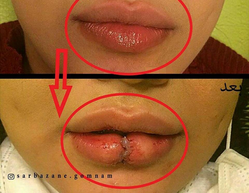 یکی از کاربران شبکه اجتماعی فیس بوک عکسی را از این نوع عمل منتشر کرده است. در این تصویر شکل لب شخص را قبل و بعد از عمل به تصویر میکشد.