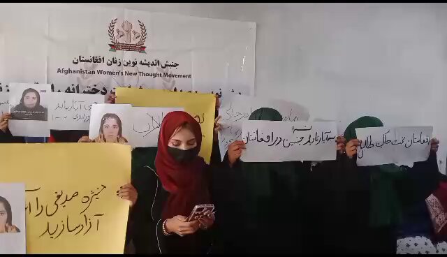 این زنان معترض با قدردانی از مبارزهی و ایستادگی زنان در برابر طالبان خواستار آزادی منیژه صدیقی، از زندان شدند.