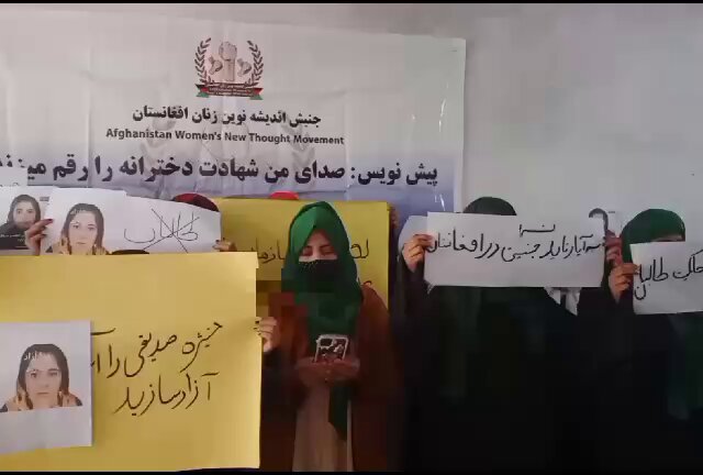 گروه از زنان معترض دیگر موسوم به “جنبش اندیشهی نوین زنان افغانستان” نیز در ولایت تخار تجمع اعتراضی برگزار کرده و میگویند که طالبان، منیژه صدیقی را به جرم آتشزدن عکس رهبر طالبان به یکونیم سال زندان محکوم شدهاند.