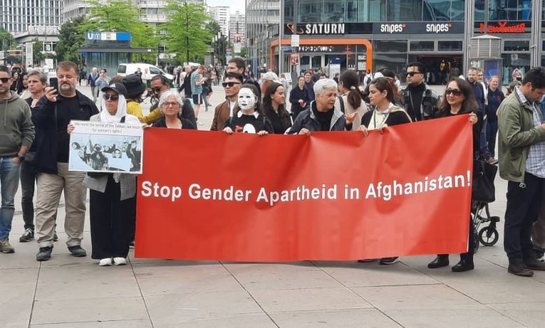 شهروندان افغانستان در برلین پایتخت جرمنی، تجمع اعتراضی برگزار کرده و خواستار بهرسمیتشناسی آپارتاید جنسیتی شدند. آنان همچنان از جامعهی جهانی وسازمان ملل متحد خواستهاند که برای تغییرات مثبت در مورد وضعیت زنان و دختران اقدامهای عملی انجام دهند.