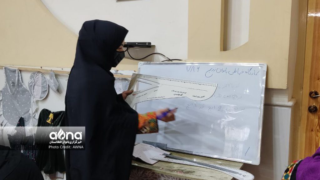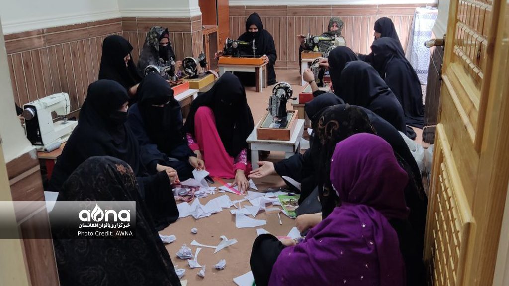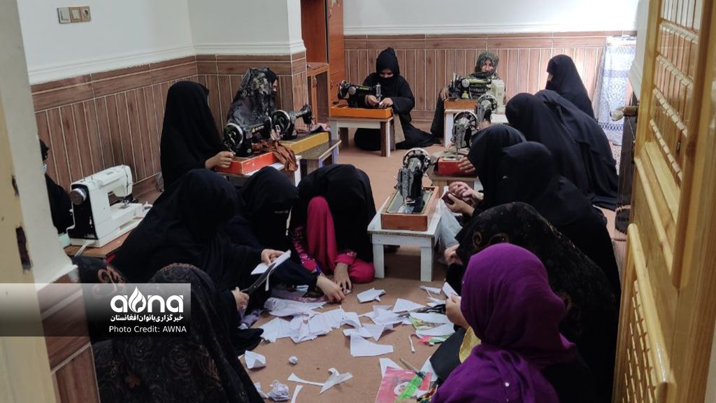 دختران و زنان پس از ممنوعیت کار و آموزش به کارهای صنایعدستی رو آوردهاند. یک زن تجارتپیشه برای تعداد از زنان در نیمروز خیاطی را آموزش میدهد تا زنان از این طریق بتوانند کسب درآمد کنند.