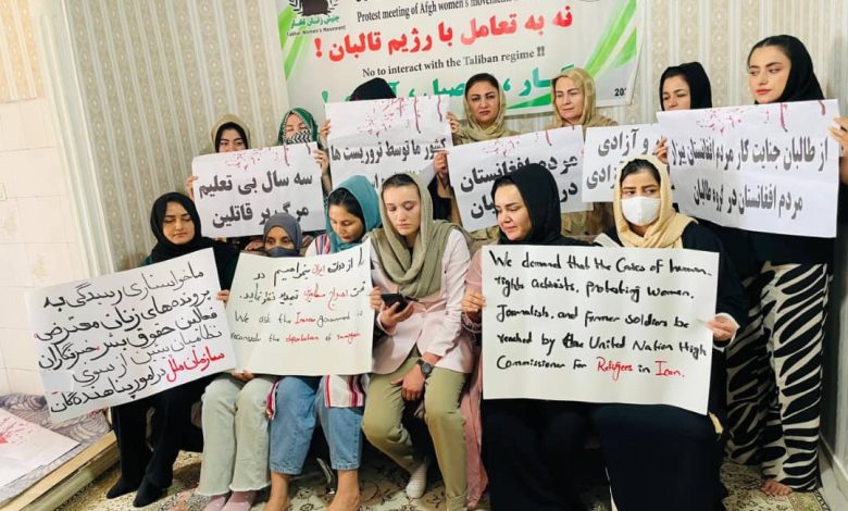 تعداد از زنان معترض موسوم به “جنبشهای اعتراضی زنان افغانستان” در واکنش به نقض حقوق بشر، وضعیت بد مهاجران در کشورهای همسایه و رویکرد تعاملی جهان با طالبان در تهران پایتخت ایران گردهمایی برگزار کردند.