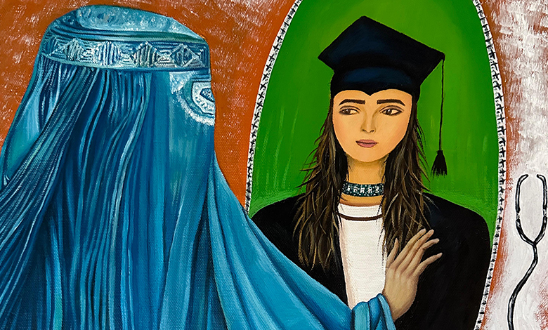 ربابه محمدی، نقاش برجستهی افغانستانی که اکنون در کانادا زندگی میکند؛ از هنر بهعنوان ابزاری برای بیان مشکلهای زنان در حاکمیت طالبان استفاده میکند تا توجهی جهان را به وضعیت زنان جلب کند.