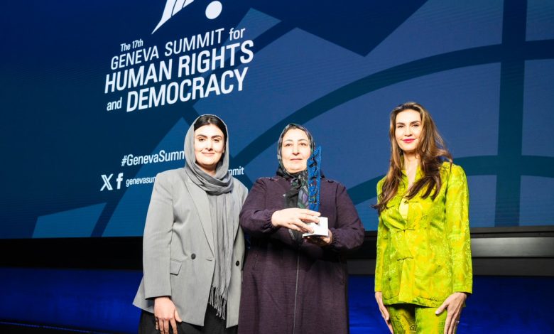نشست جنیوا برای حقوق بشر و دموکراسی، با نشر خبرنامهای در صفحهی اجتماعی اکس خود اعلام کرده که این جایزه در هفدهمین نشستاش به مادر و دختر اهل افغانستان، اهدا شده است.