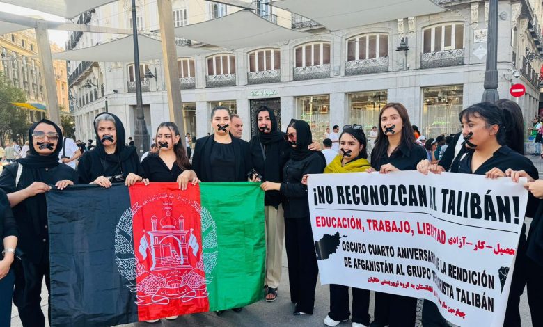 شماری از فعالان مدنی و مدافعان حقوق بشر افغانستان در اسپانیا، همزمان با چهارمین سال سقوط جمهوری گردهمایی برگزار کرده و خواستار عدم مشروعیتبخشی طالبان و بررسی اقدامهای این گروه بهویژه در برابر زنان بهعنوان «جنایت علیه بشریت» شدند.