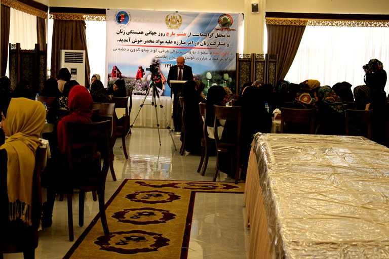 به منظور گرامی داشت از روز همبستگی زنان(هشت مارچ) در هرات، برنامهای تحت نام” نقش و مشارکت زنان در مبارزه با مواد مخدر” برگزار شد.