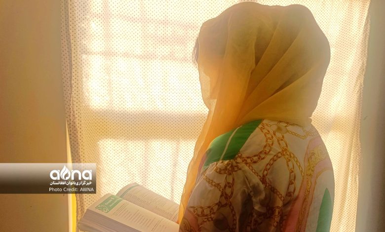 مریم نوابی، ۱۹ ساله، از روستایی در اطراف هرات به شهر آمده تا در یک مرکز آموزشی آمادگی آزمون تافل گیرد و مخفی درس بخواند.