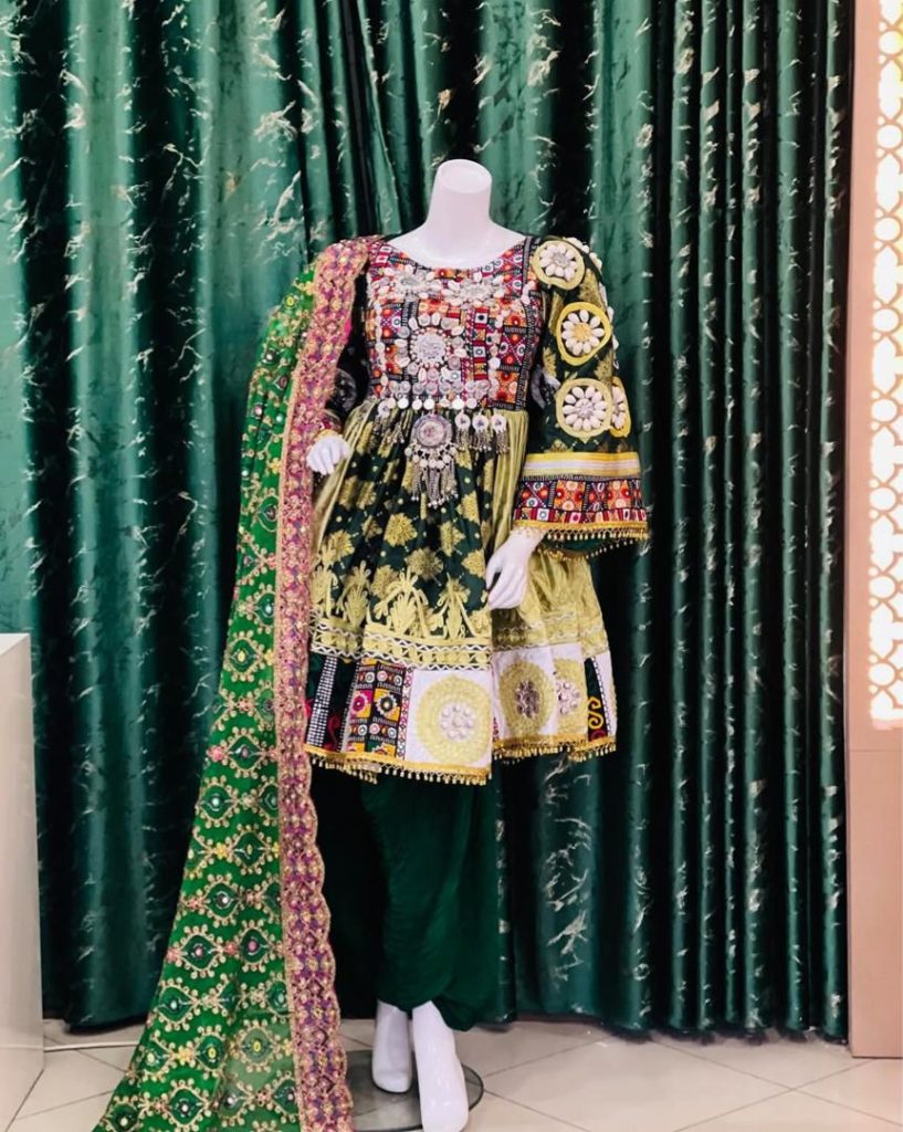 محرابی: طرحهای را که انجام میدهم و میدوزم، بیشتر لباسهای محلی افغانستان است. یکی از دلیلهایش این است که خودم به لباسهای محلی و سنتی بیشتر علاقه دارم.