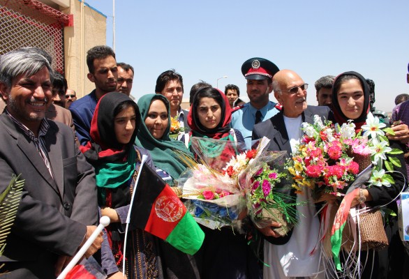 در همین حال دختران رباتساز هرات که خستگی سفر طولانی درچهرههای شان دیده میشد از استقبال گرم مقامهای حکومت وحدت ملی در کابل و هرات ابراز خرسندی کردند.