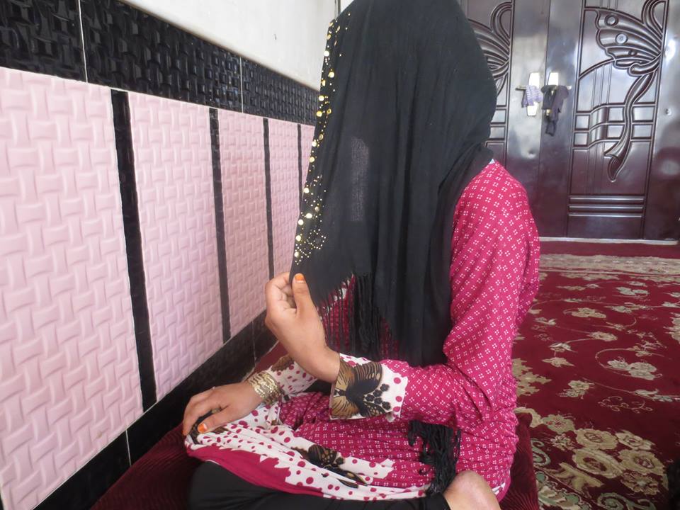 وی میگوید: «یک سال قبل، شب بود و روی حویلی دنبال آب رفته بودم که شوهرم به خاطر این که در آوردن آب دیر کردهام، با لگد به کمرم زد و روی بشکههای آب افتادم و رودهام قطع شد، ضعف کردم، آنان فکر کرده بودند که من مکر میکنم و مرا شفاخانه نبردند، تا این که بعد از دو روز و یک شب، وضعم خراب شد و بیهوش شدم و بعد مرا به یکی از کلنیکهای شخصی و بعد به شفاخانه حوزهای هرات بردند و عملیات شدم.»