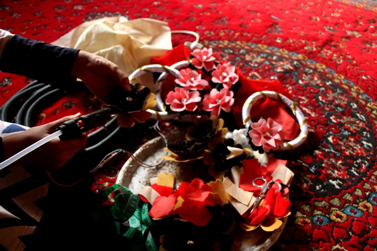 سیما که دارای سه طفل میباشد میافزاید که برای تامین مخارج فرزندانش روزها و شبها مصروف بافندهگی، خامکدوزی و ساختن گلهای تزیینی بوده و آنها را به همسایهها میفروشد و با پول آن، مصارف خانه را پرداخت میکند .او در ادامه میگوید که با استفاده از اسفنج و تکههای ساتنی ارزان که اکثرا از لباسهای دوخته شدهی لیلامی آن را بدست میآورد گلهای تزیینی که برای نگهداری دستمال نیزاستفاده میشود میسازد .