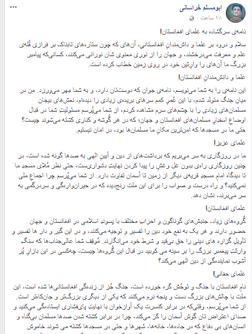 برخی نیز با گذشتن پستهای عنوانی نامهی سرگشاده به عالمان دین واکنش شان را در برابر این اقدام نشان داده اند.